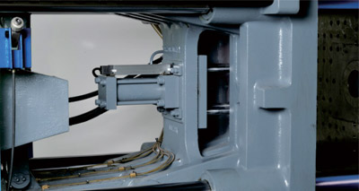 采用雙射移結(jié)構(gòu),前拉式射臺油缸,平行牽引,保護噴嘴與模具接觸不偏移密封佳,不易漏膠。